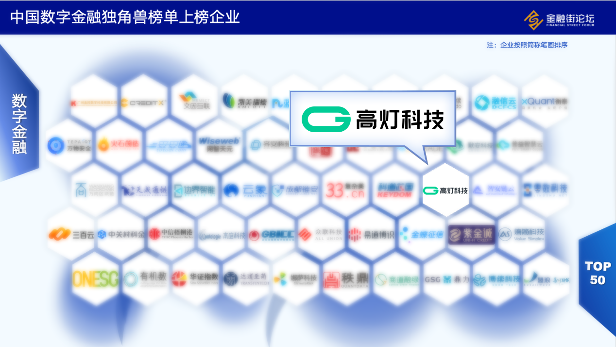 10月29日,金融街之声——“金融街发布”专场活动在京举办,《中国数字金融独角兽榜单2025》正式发布,高灯科技凭借在数字金融领域的技术突破与产业赋能成效,成功跻身 50 强榜单,成为数字金融领域的独角兽企业代表。